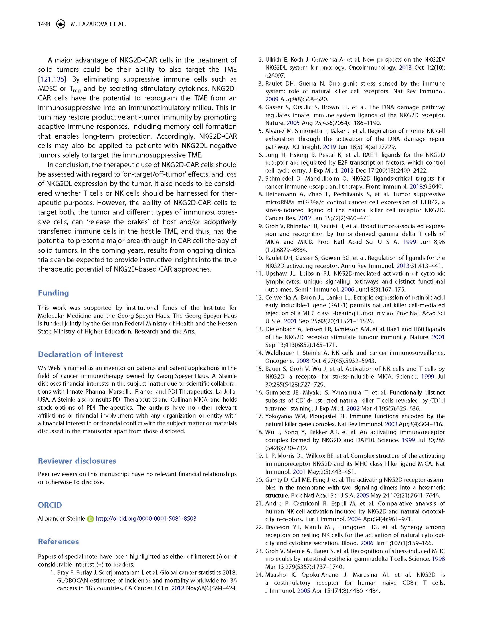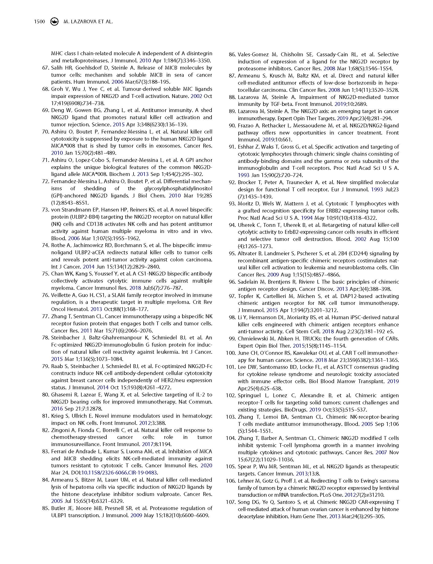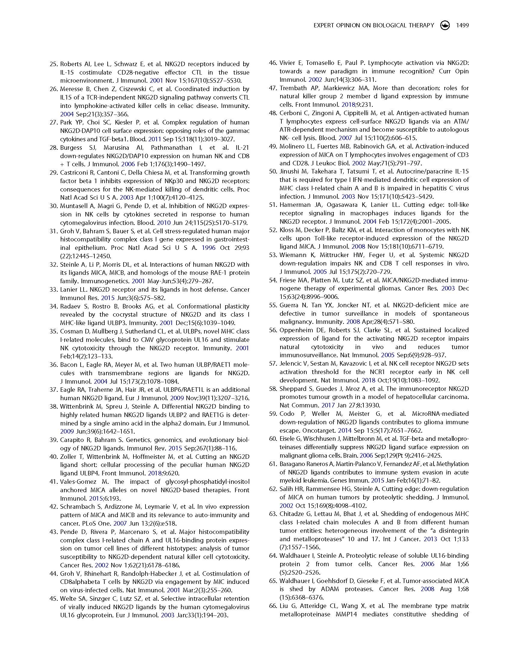 專家意見 Arming cytotoxic lymphocytes for cancer immunotherapy by means of the NKG2D/NKG2D ligand system